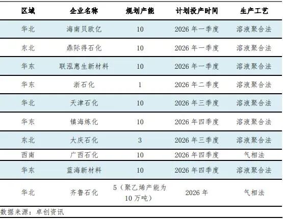表 2026年POE拟在建产能统计